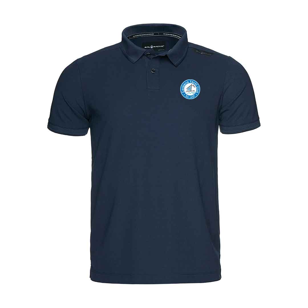 Canberra Yacht Club Short Sleeve Tech Polo made in 100% polyester with high breathability. Canberra Yacht Club logo at left chest. Sail Racing logo graphic at shoulder seam and bloc logo at back yoke. Transfer print as main label at inside neck and Sail Racing logo tape at slit. Flat knit for collar and sleeve end.