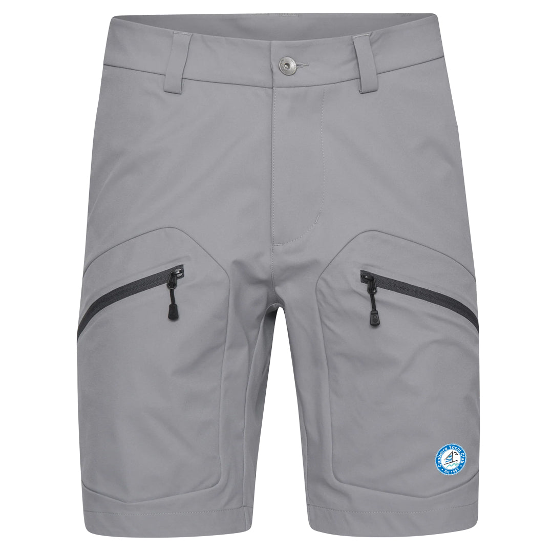 Spray T8 Shorts made in a recycled polyester fabric. Open waist and back pockets. Two spacious pockets at front with zipper closure. Belt loops at the waist. CYC logo at left leg. Sail Racing logo embroidery at back pocket.