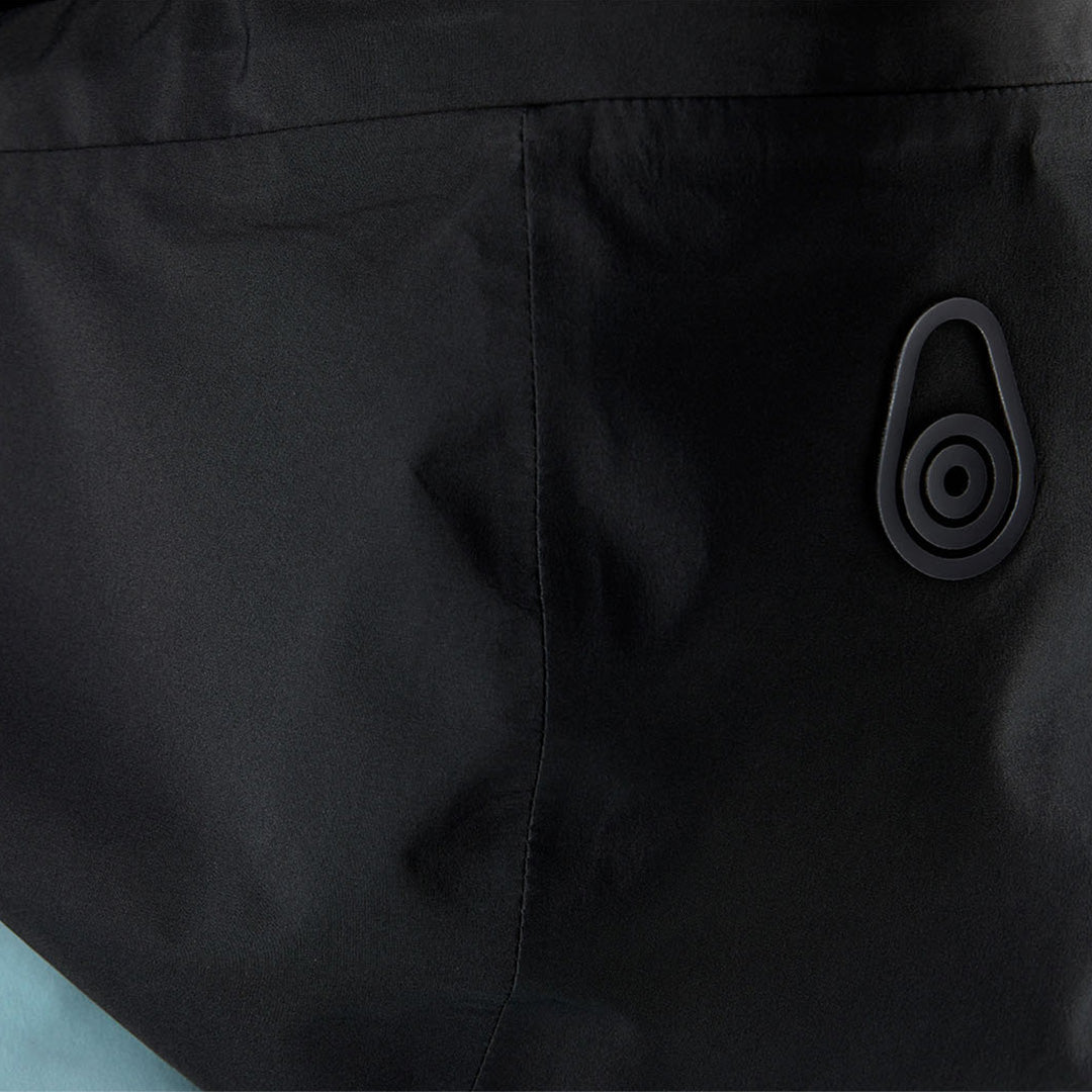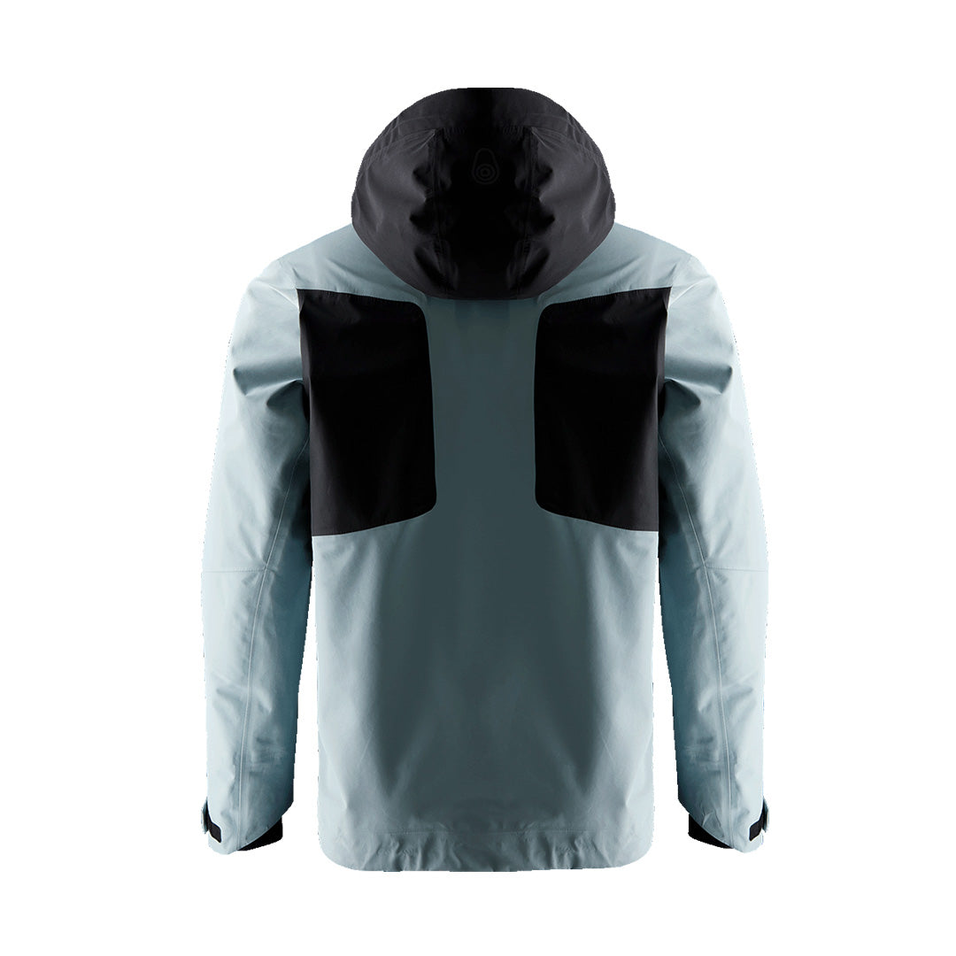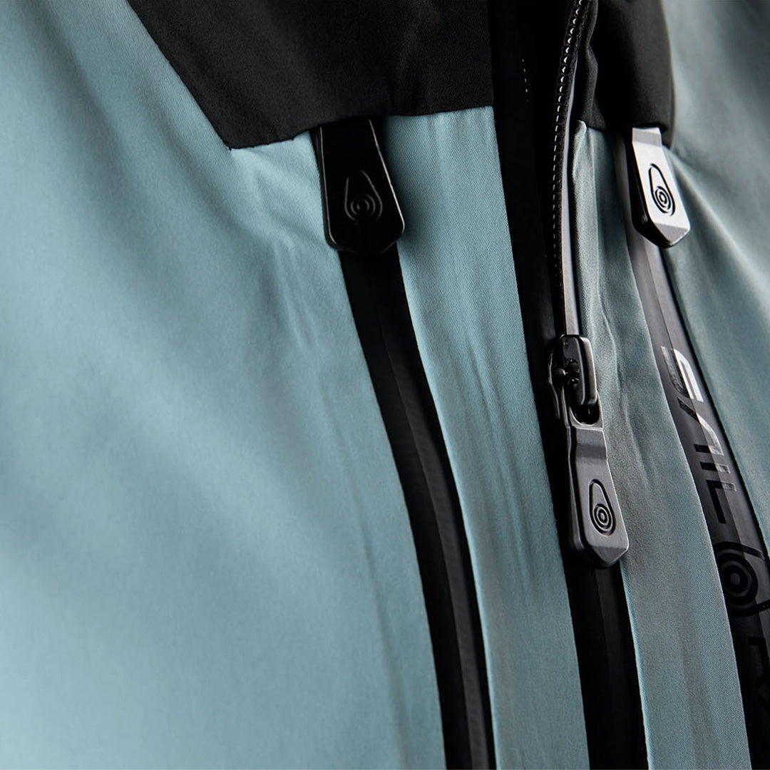 The front features a water-resistant SHZ® zipper along with an internal inner placket to effectively block wind and water intrusion. To further shield against external weather conditions, the cuffs are reinforced with internal Lycra® sleeves and are adjustable with Velcro closures. The fit of the jacket can also be customized at the hem using two internal drawstrings. The jacket features a spacious hood with a high collar and a welded hood brim for water drainage, which can be adjusted for the desired fit using an elastic drawstring at the back of the head.