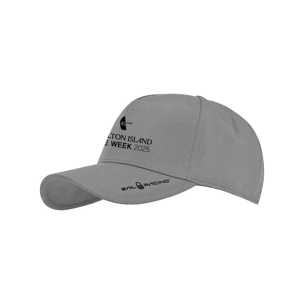 The HIRW25 Spray Team Cap is constructed in a mix of polyester and elastane with adjustment buckle at the back for best fit. Hamilton Island Race Week 2025 logo on front. Detail stitches at the brim and stitched eyelets. Sail Racing woven print at inside.