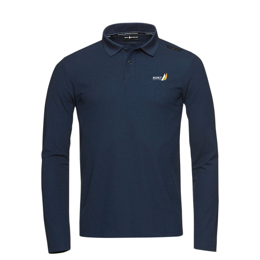 Bow Tech Long Sleeve Polo made in 100% polyester with high breathability. Sail Racing logo graphic at shoulder seam and bloc logo at back yoke. Transfer print as main label at inside neck and Sail Racing logo tape at slit. Flat knit for collar and sleeve end.