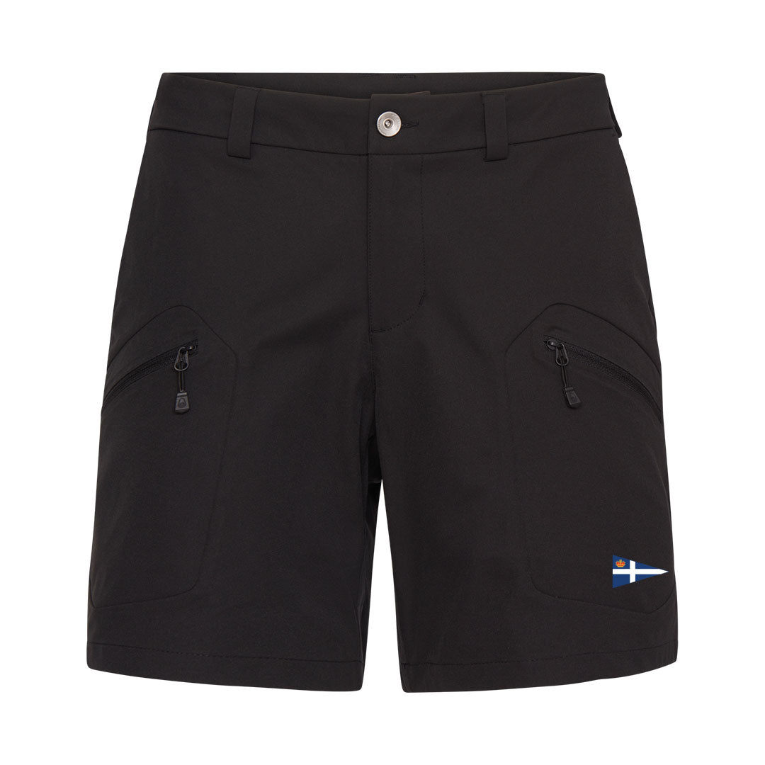 Women's Spray T8 Shorts made in a recycled polyester fabric. Open waist and back pockets. Two spacious pockets at front with zipper closure. Belt loops at the waist. Sail Racing logo embroidery at back pocket.