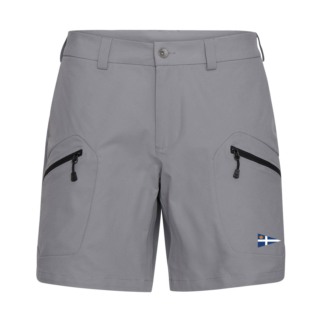 Women's Spray T8 Shorts made in a recycled polyester fabric. Open waist and back pockets. Two spacious pockets at front with zipper closure. Belt loops at the waist. Sail Racing logo embroidery at back pocket.