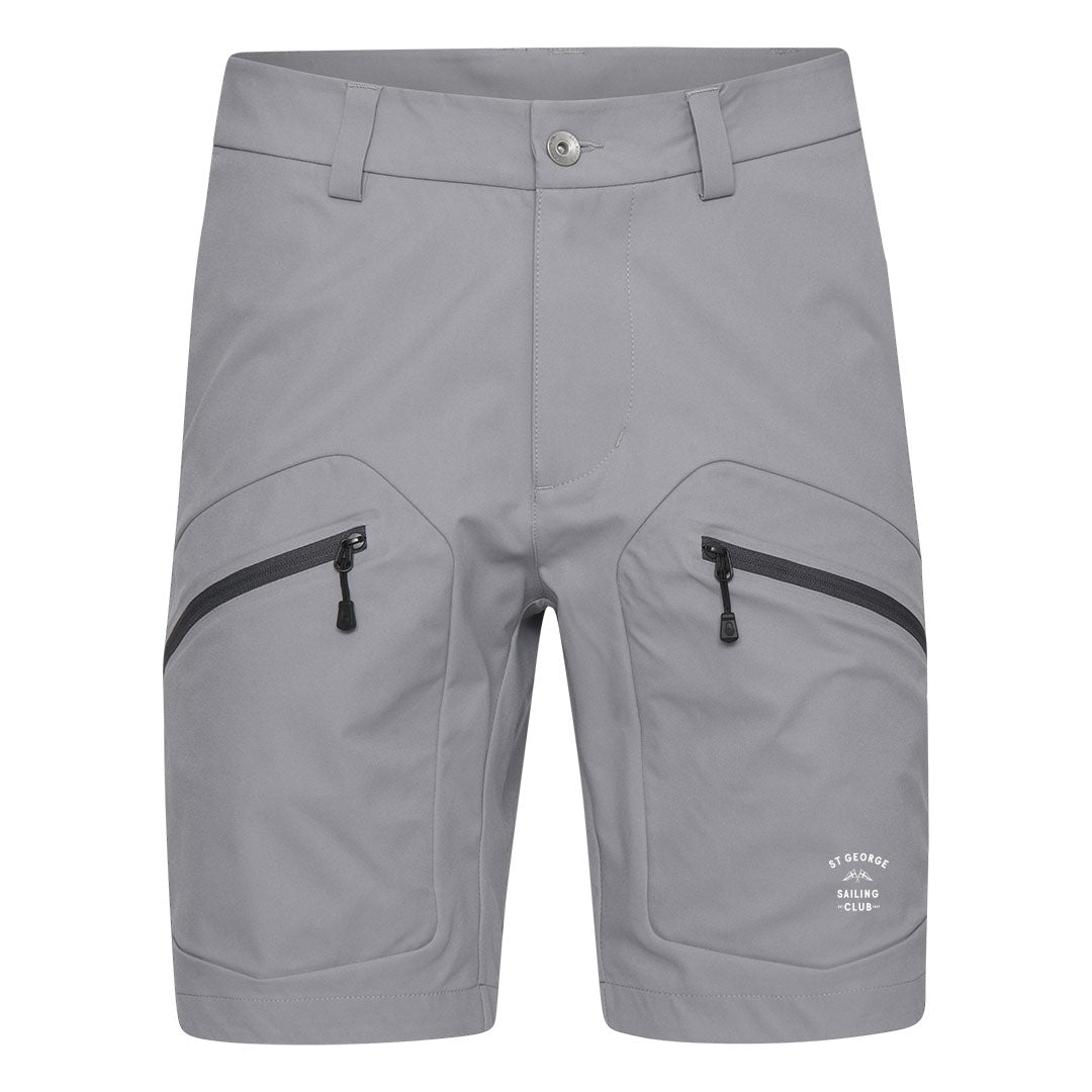Spray T8 Shorts made in a recycled polyester fabric. Open waist and back pockets. Two spacious pockets at front with zipper closure. Belt loops at the waist. Sail Racing logo embroidery at back pocket.