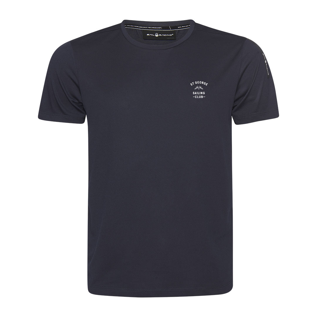 Spray Technical Tee made in E.Dye polyester fabric with high breathability. UPF rating: 15. Sail Racing logo at sleeve and bloc logo at back yoke. E.Dye conduce to approximately 75% water savings in comparison to traditional fabric dyeing.